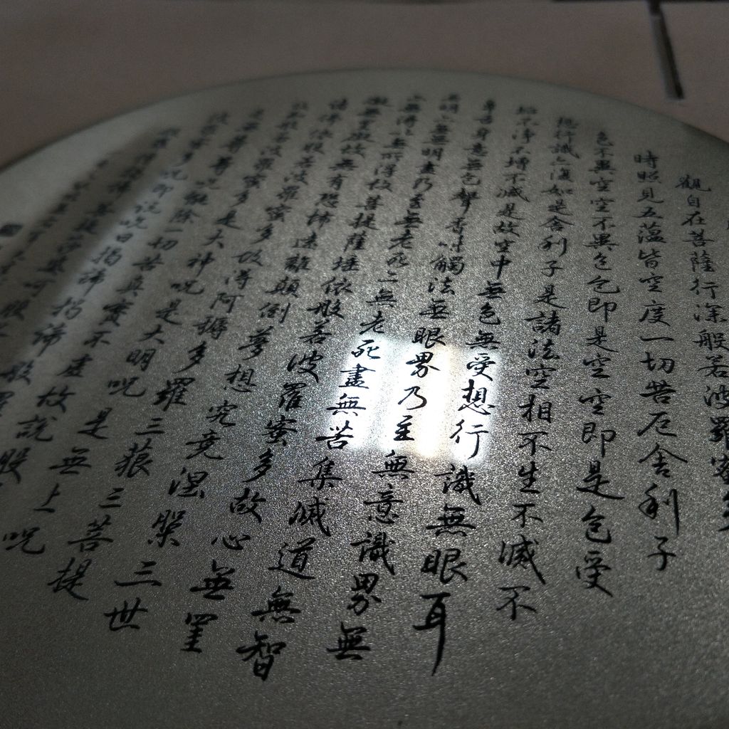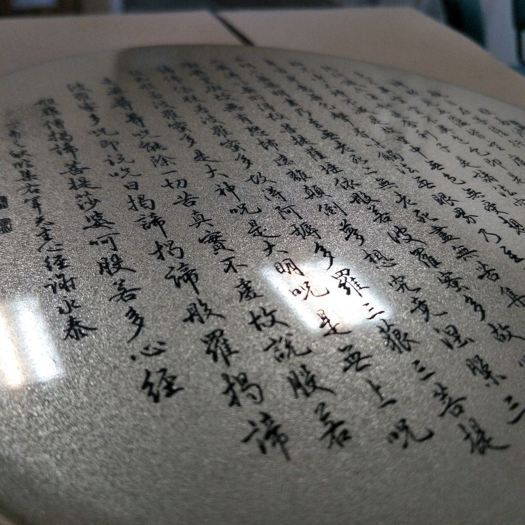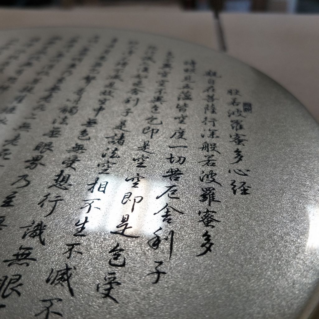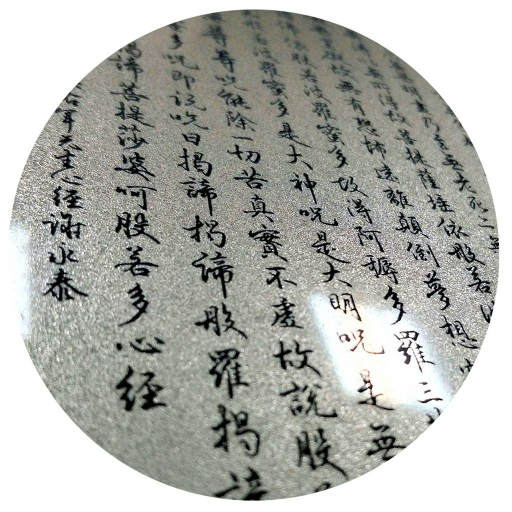 3.我們不是依樣畫葫蘆,作品都經過考究;中文我們逐一確認過文字,我們知道很多經文的文字電腦會呈現不出來,兩個字合再一起也常看到,我們對於用拼湊方式不接受。因為,不同字體套用若隨意套用就不是原文,不是原文就不是正確的咒語,我們會擔心文字正確性就會影響效果。所以,我們除了逐一校稿,必要時候當遇到特殊字元,我們會謹慎設計將文字合入同字元。