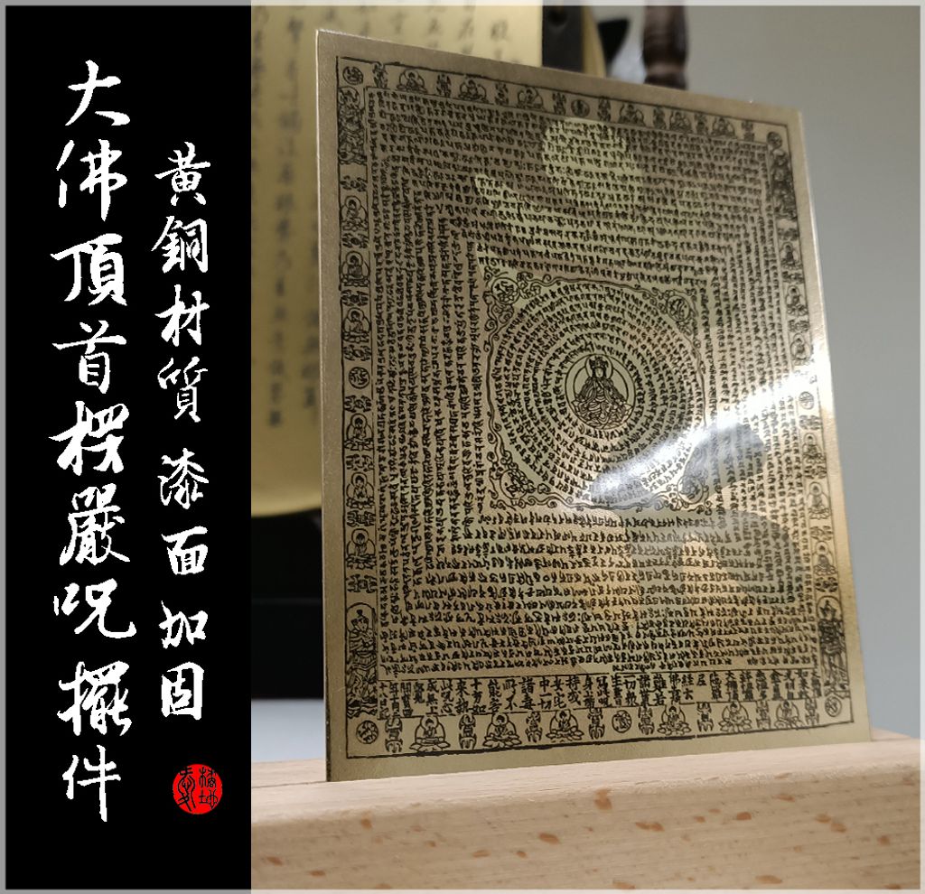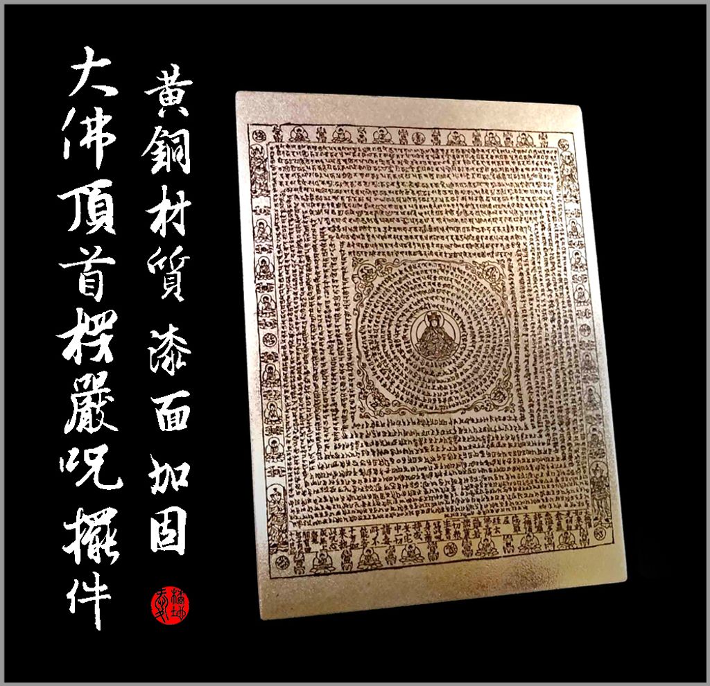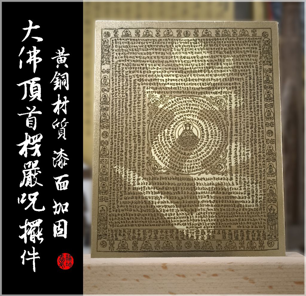 素材取自敦煌藏經閣珍稀墨寶。我們運用特殊重雕工藝,將「咒心圖案」立體化凸顯,使經文清晰可見;在光影折射下,能巧妙呈現楞嚴神咒中神佛守護的立體法相,具備極高的感官與宗教價值。